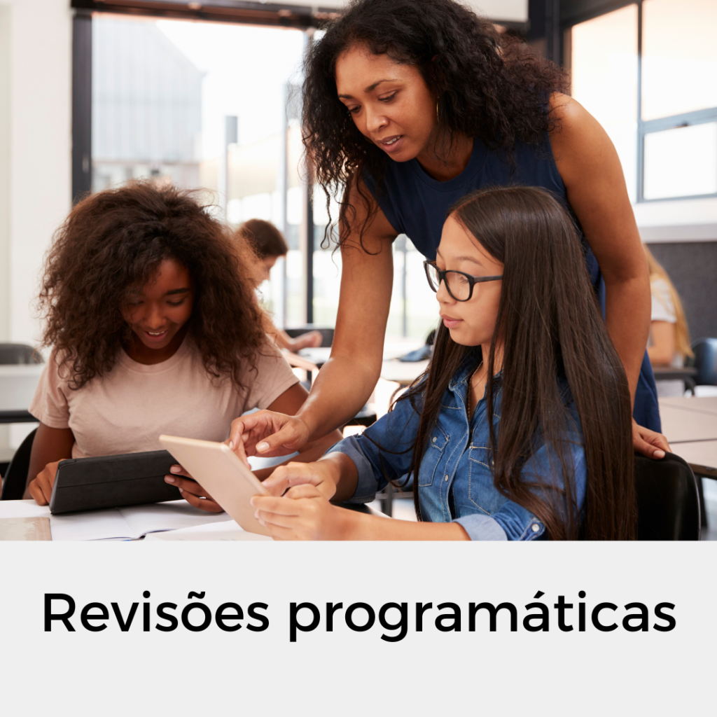Revisões programáticas corrigem lacunas e reforçam o aprendizado, garantindo um acompanhamento contínuo.